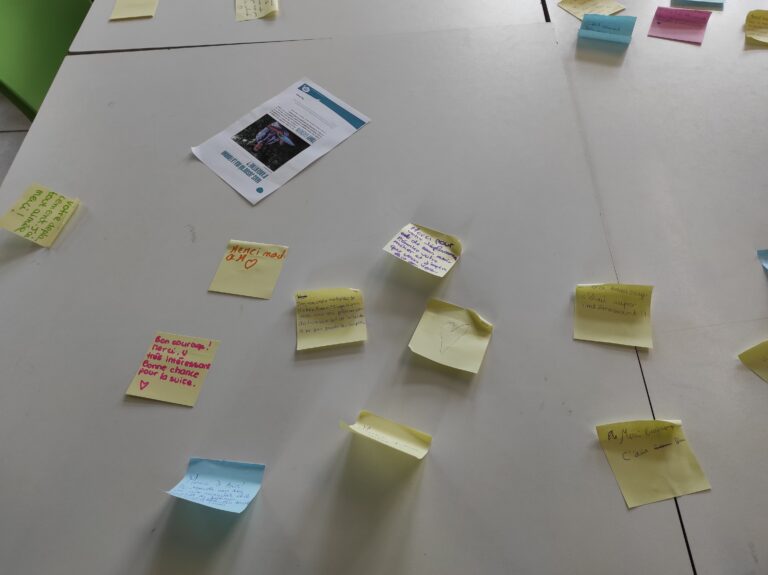 Pour clôturer cette journée enrichissante, les jeunes chercheurs ont échangé avec les élèves lors d’un dernier atelier. Chacun a alors écrit un mot sur un post-it pour exprimer ce qu’il ou elle avait le plus apprécié ou préféré durant cette rencontre. Ces petits mots, remplis de sincérité et d’enthousiasme, témoignent de l’impact positif de cette initiative : des rêves d’avenir, des découvertes et surtout une nouvelle inspiration pour ces jeunes en quête de sens et de projets.