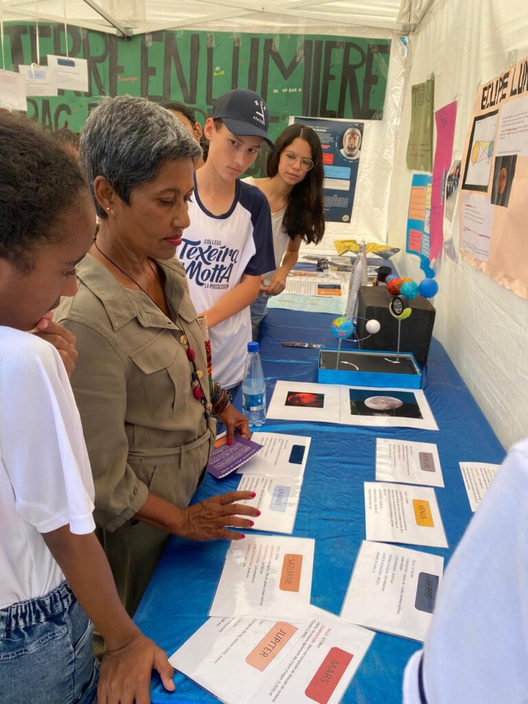 Notre stand dynamique a accueilli la délégation CCSTI Sciences Réunion et celle du Préfet et du Recteur ainsi que Madame la Maire de Saint Denis, Erika BAREIGTS.