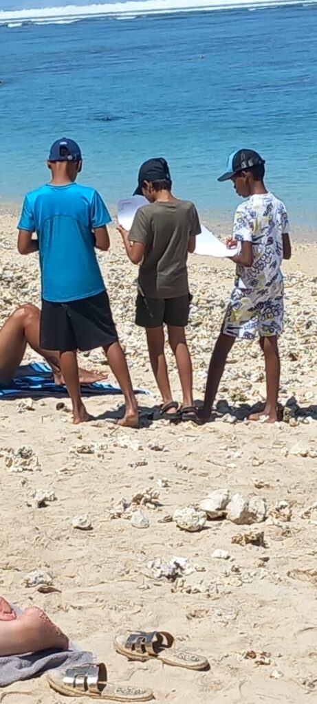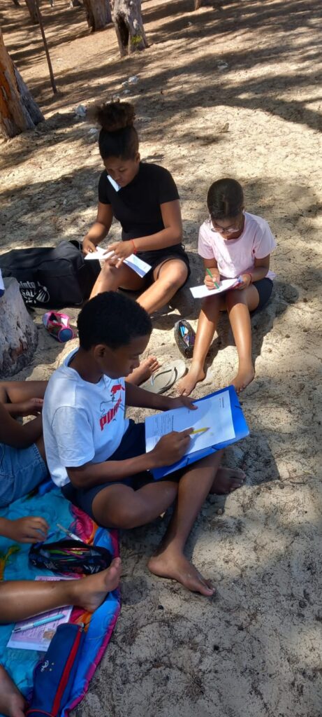 C’est une excellente journée pour profiter du moment… Marcher sur la plage, dessiner un croquis de paysage, enquêter sur les habitudes des usagers, se sensibiliser à la chaîne alimentaire de la faune marine et jouer au ballon sont d’excellentes activités en bord de mer.