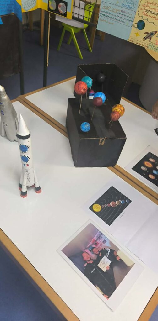 En effet, plusieurs ateliers ont ponctué ce temps fort : présentation de leurs travaux, projection de films, notamment celui du décollage de Sophie ADENOT, astronaute française en route pour l’ISS, observation des étoiles grâce aux instruments de Mme PERIGAULT (directrice de l’AAR) et de 2 membres de son association, et un moment ludique avec des ateliers créatifs.