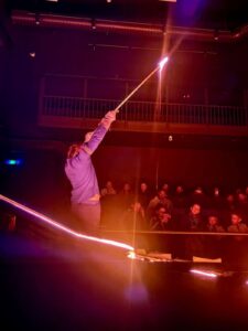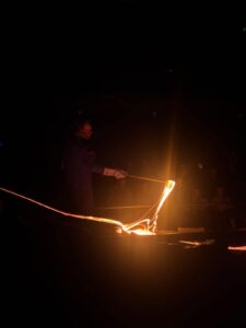 Le spectacle recré une éruption volcanique en surchauffant de la vraie lave jusqu’à 1100°C (2000°F), puis en la déversant dans une salle d’exposition remplie de personnes.
