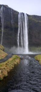 Sa particularité est de tomber d’un surplomb. Ce qui fait qu’il est possible de passer derrière le voile d’eau avec un bon imperméable et de faire le tour complet de la chute. Alimentée par le glacier Eyjafjallajökull, la rivière Seljalandsá tombe de 40 m de haut dans une large vasque. Elle n’est exposée au soleil qu’en fin d’après-midi.