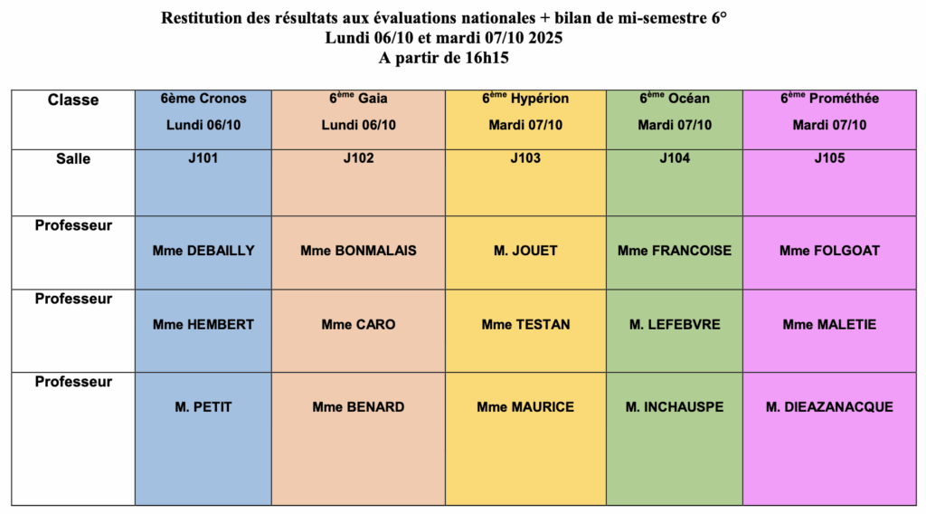Ce temps d’échange permettra de faire le point sur le bilan de mi-semestre et de restituer les résultats des évaluations nationales des élèves (pour les 6èmes).
