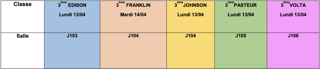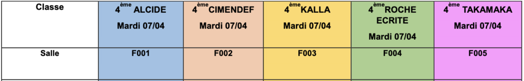 - Classes de 4e : mardi 7 avril 2026