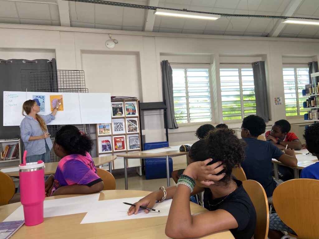 À l’occasion du Festival du Livre Péi, les élèves du collège Titan ont eu la chance de vivre une rencontre enrichissante autour de l’illustration et de la création artistique. Ce moment privilégié leur a permis de découvrir le parcours d’une artiste, d’échanger sur son travail et de nourrir leur propre imagination.