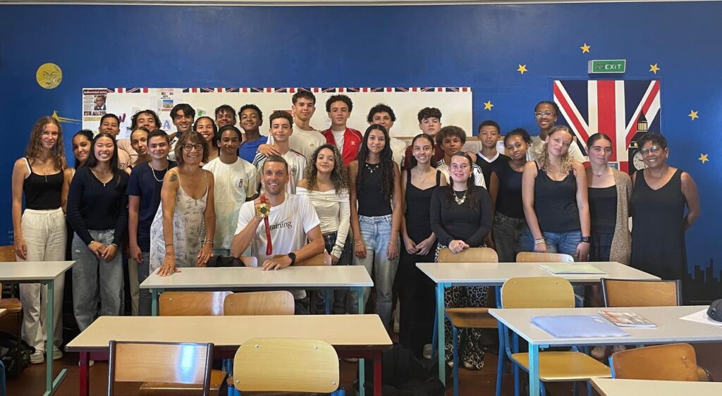Lors de la semaine de l’olympisme et du paralympisme en avril 2025, la classe de 301 a eu le privilège d’échanger avec M. Alexis Hanquiquant, champion du monde et paralympique de triathlon, accompagné de M. Armand Sautron, président de l’association ATHSA du Tampon. Les élèves ont également réalisé des affiches dans le cadre d’un projet transdisciplinaire anglais-français-EPS. Bravo à tous pour votre engagement !