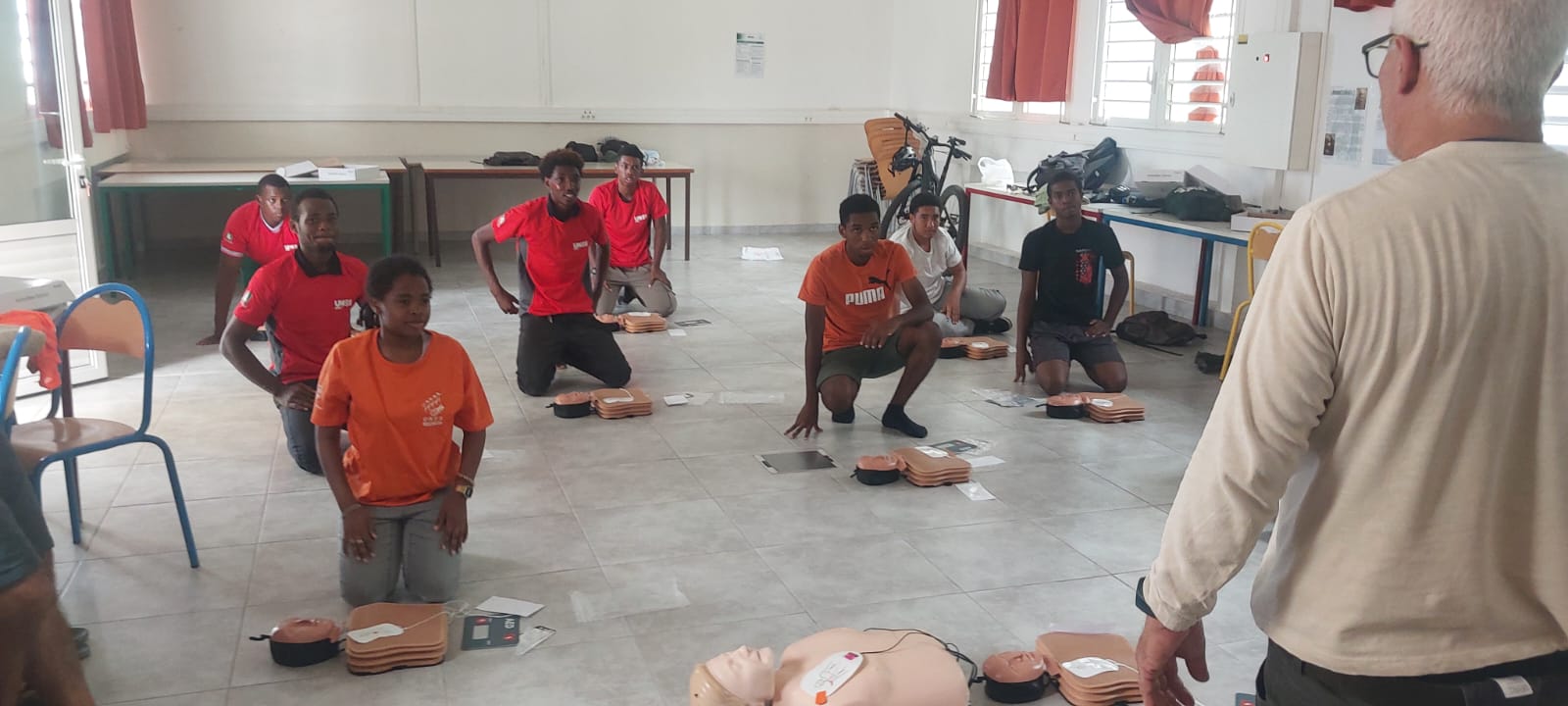 Hier entre midi et deux heures ils ont appris à mettre en sécurité la victime, prodiguer le massage cardiaque et ont même été formés par le coordonnateur à utiliser un défibrillateur cardiaque !
