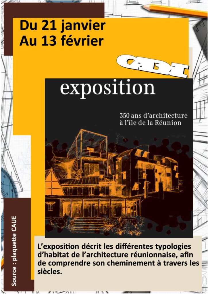L’exposition du CAUE intitulée « 350 ans d’architecture à La Réunion » sera accueillie au CDI du 21 janvier au 13 février 2026.