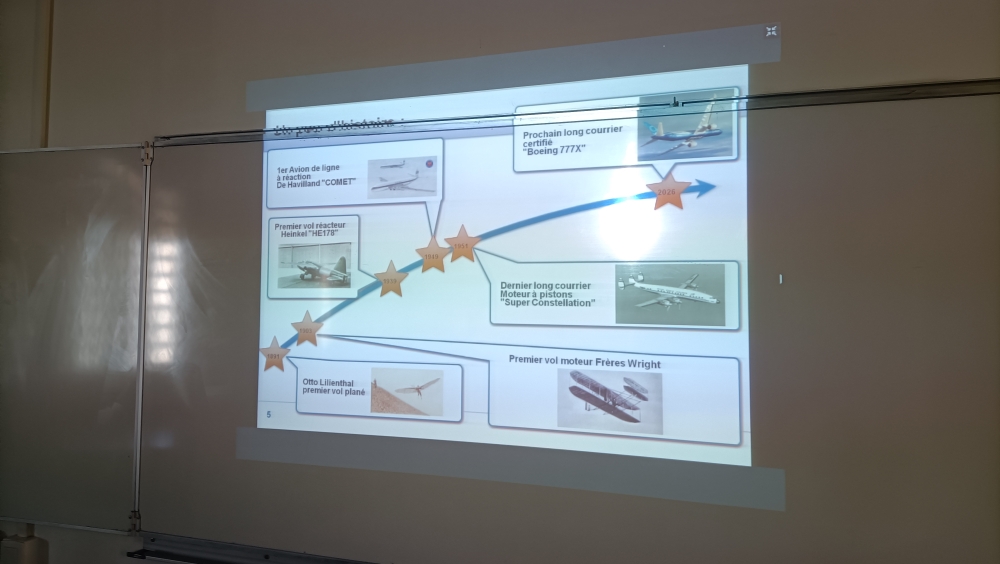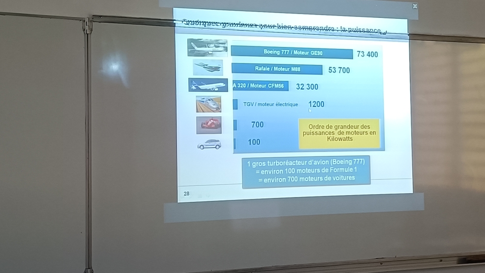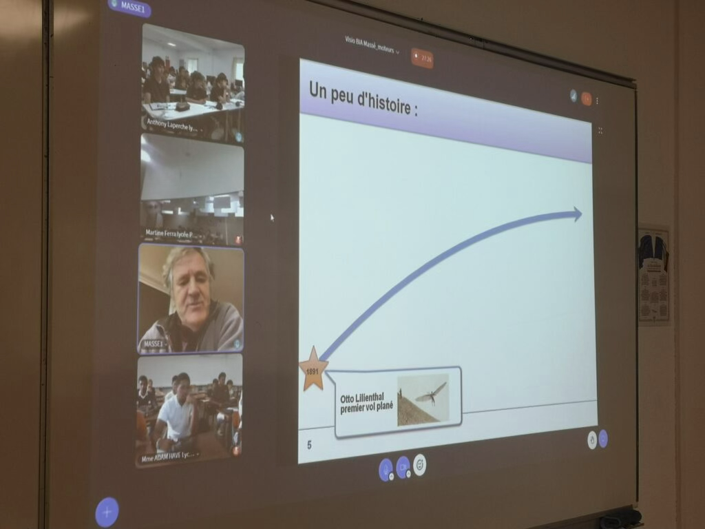 M. Massé a pu échanger avec le lycée Ambroise Vollard mais aussi quatre autres lycées de l’académie depuis l’hexagone. Après avoir détaillé le fonctionnement des moteurs d’avion et d’hélicoptère (turbo réacteur, turbo propulseur, turbo moteur), il a pu répondre aux questions des élèves. : « Peut-on décoller avec un moteur en panne sur un biréacteur ? », « Pourquoi passer de 4 à deux moteurs ? » … Le diaporama est disponible sur le site.