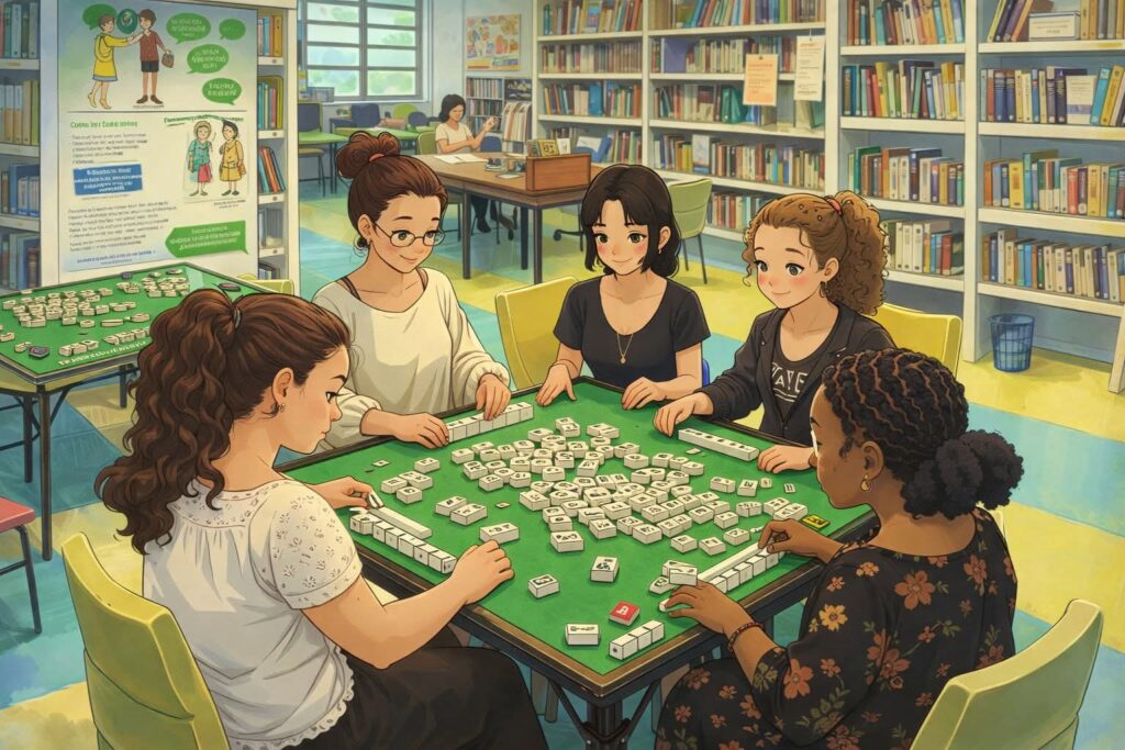 Le jeudi 19 mars, le CDI a accueilli deux intervenantes de l’association « Vent du sud » pour une initiation au mah-jong riichi japonais. Deux sessions de 45 minutes pendant la pause méridienne ont permis à ceux qui le voulaient de découvrir ce jeu qui s’apparente aux échecs. Les participants, enchantés, espèrent pouvoir bénéficier de nouvelles séances de mah-jong… MERCI aux membres de l’association « Vent du sud » pour cette découverte !