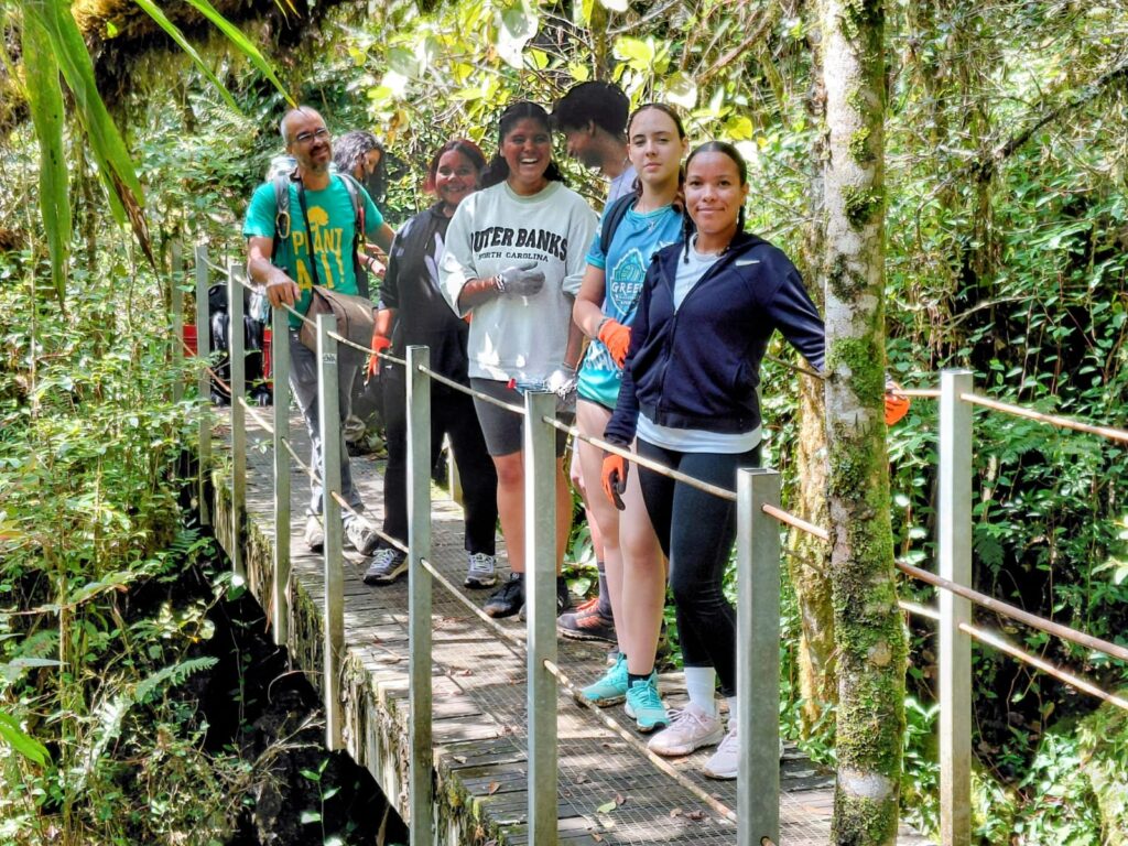 Après une heure de travail minutieux sur une petite zone, un premier groupe a rempli plusieurs sacs qui ont été ramenés dans le bas de la forêt tandis qu’un autre groupe s’est occupé d’arracher des lianes rouges et de l’ayapana dans une ravine.