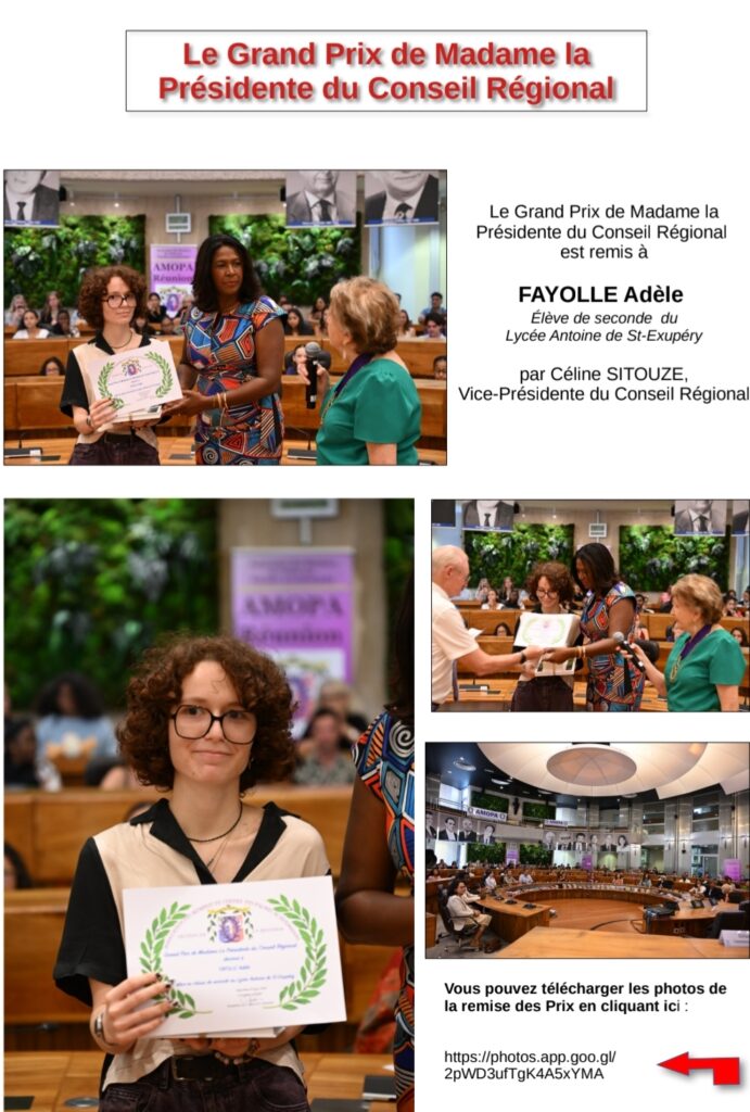 🍒 Cerise sur le gĂąteau : AdĂšle Fayolle remporte Ă©galement le Grand Prix de Madame la PrĂ©sidente du Conseil RĂ©gional ! Une distinction prestigieuse pour un talent prometteur.