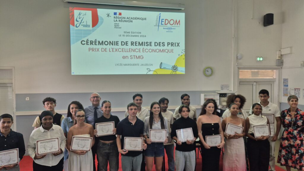 Les 20 finalistes rĂ©gionaux ont Ă©tĂ© honorĂ©s lors de la remise des prix au lycĂ©e Marguerite Jauzelon de Bellepierre, en prĂ©sence du responsable de lâIEDOM RĂ©union et de lâinspectrice acadĂ©mique dâĂ©conomie gestion. Parmi eux, les trois laurĂ©ats acadĂ©miques ont Ă©tĂ© annoncĂ©s :