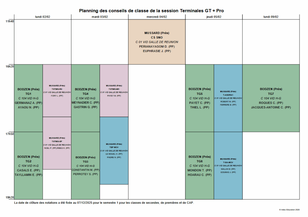 Conseil de classe des Terminales GT et Pro + CS SNO – semestre 1