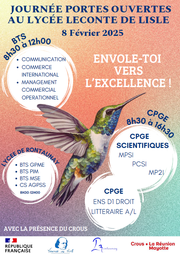 Journée Portes Ouvertes le 8 février 2025 de 8 h à 16 h 30 au lycée Leconte de Lisle
