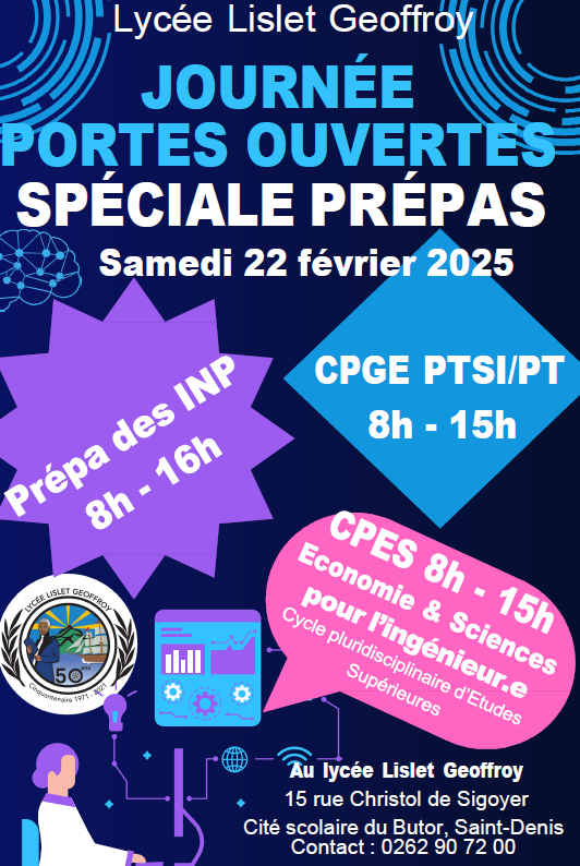 INFORMATIONS JOURNEE PORTES OUVERTES EXTERIEURE » Journée Portes Ouvertes Spéciale Prépas – Lycée Lislet Geoffroy – samedi 22 février 2025