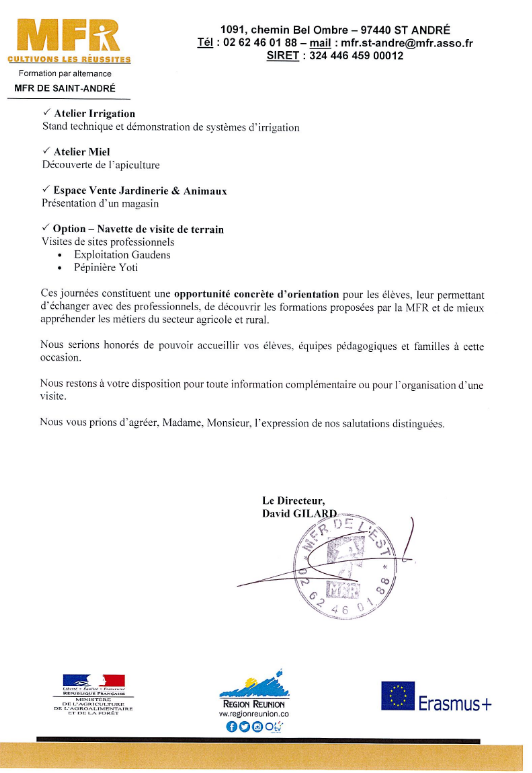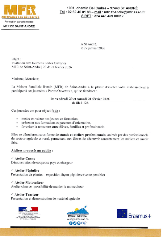 INFORMATIONS JOURNEE PORTES OUVERTES EXTERIEURE » MFR ST ANDRE Journée Portes Ouvertes – 20 et 21 février 2026