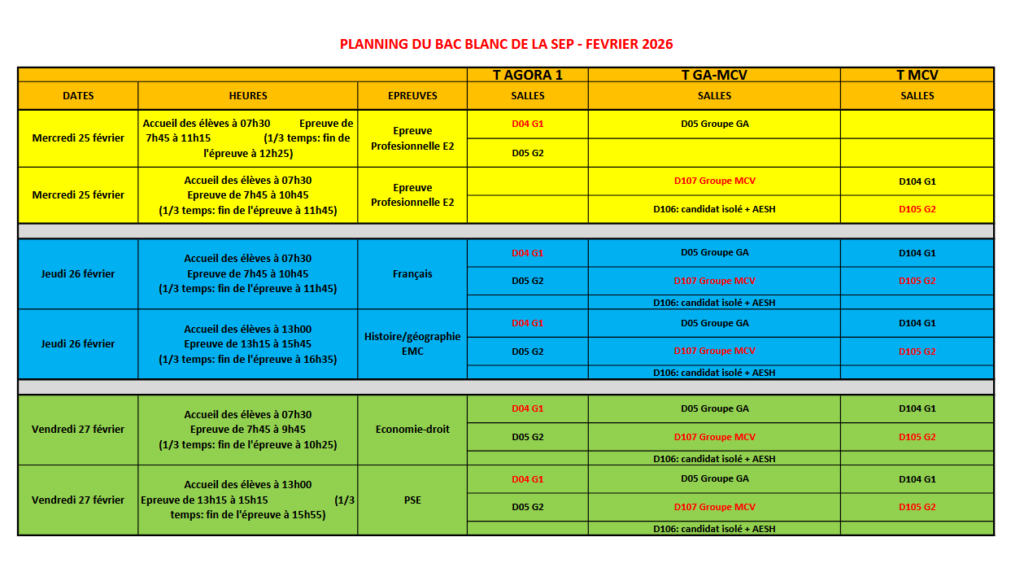 Organisation du Bac Blanc SEP – Février 2026 📅