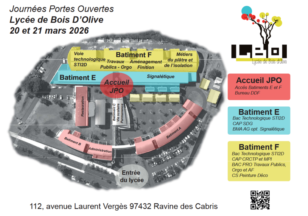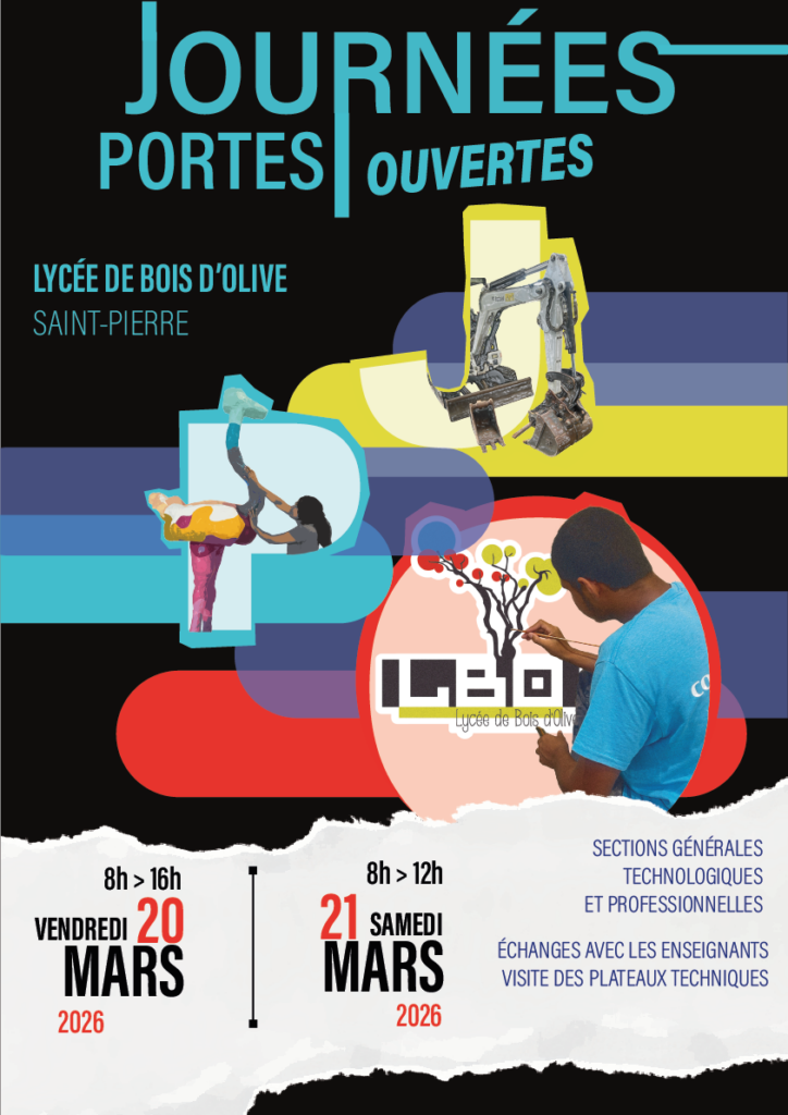 Portes Ouvertes – Lycée de Bois d’Olive 📅 Vendredi 20 mars – de 8h à 15h📅 Samedi 21 mars – de 8h à 11h