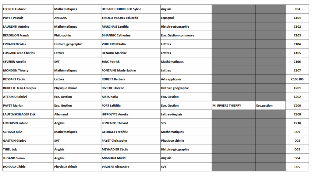 Vous trouverez en pièce jointe le planning des salles attribuées aux professeurs.