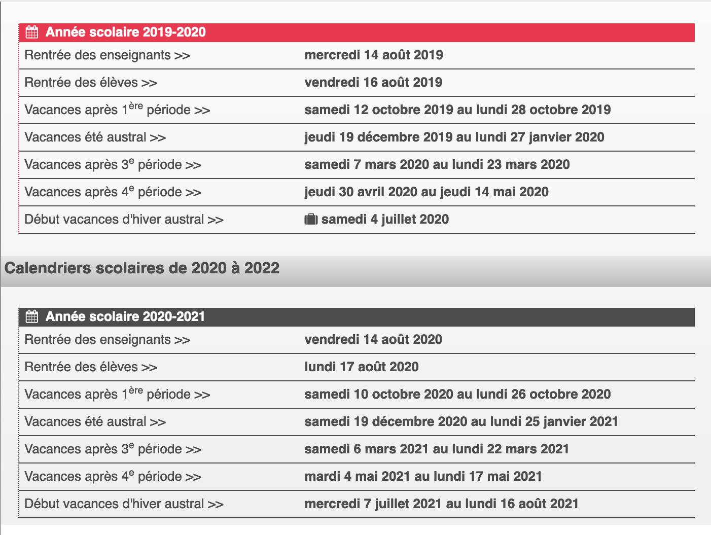 Calendriers Scolaires – Semaines A/B