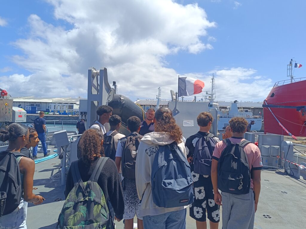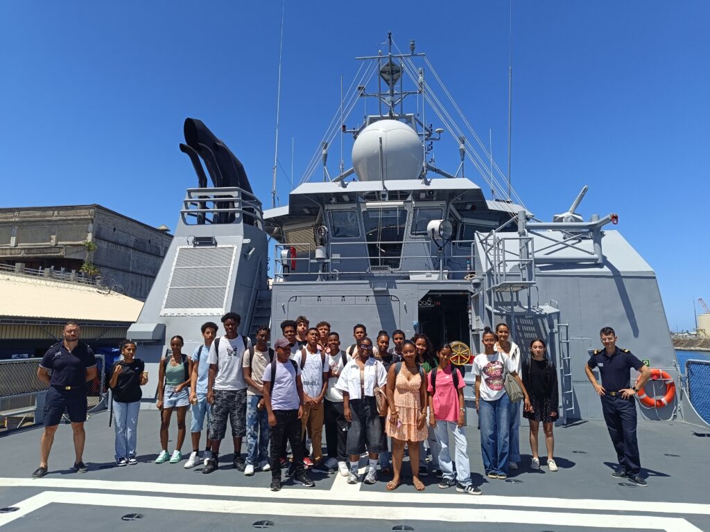 Le mercredi 8 octobre, les élèves de la classe défense du lycée Antoine Roussin ont eu l’opportunité de visiter l’Auguste Techer, le nouveau Patrouilleur Outre-Mer récemment arrivé à La Réunion.