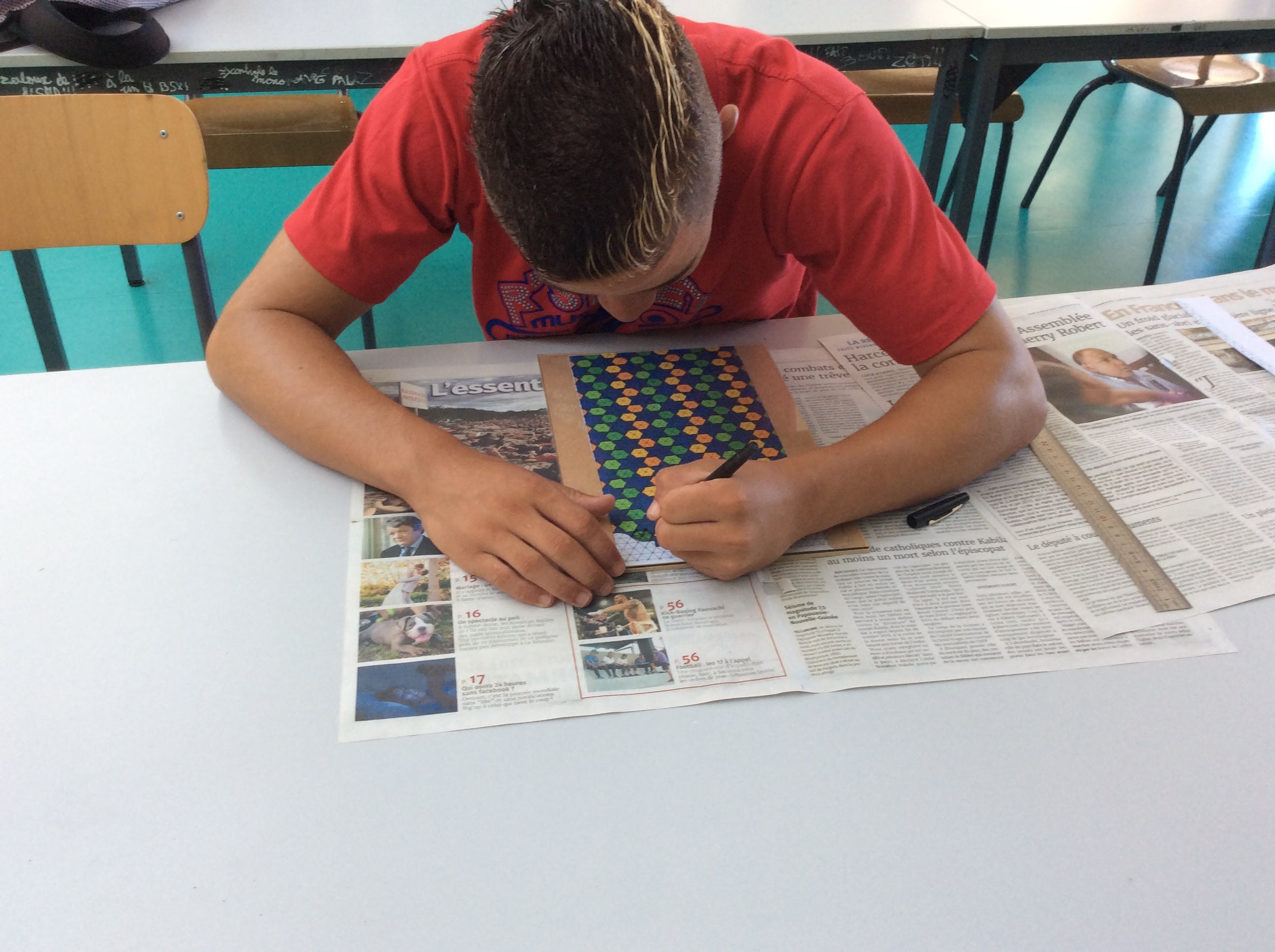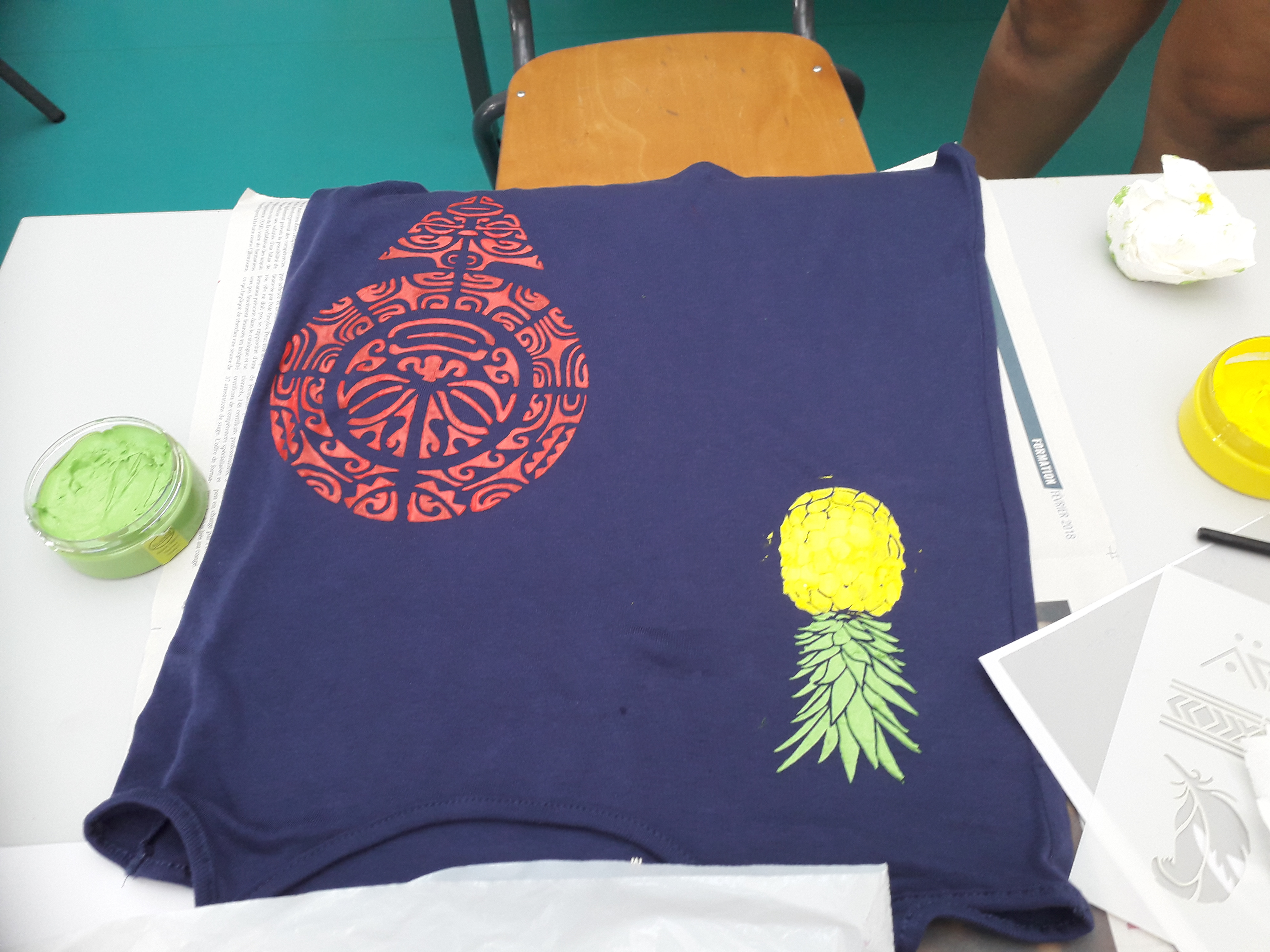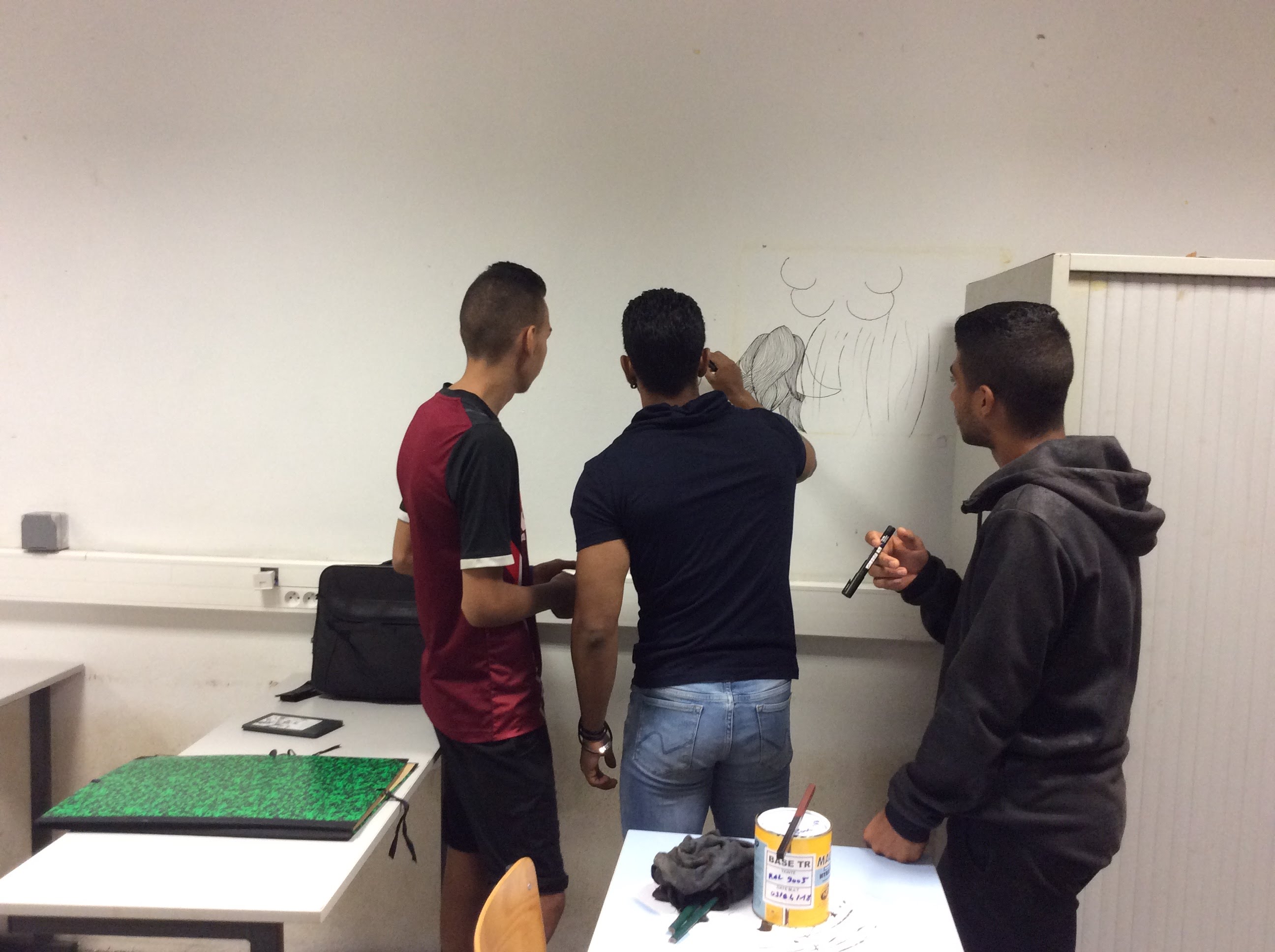 Ø ATELIERS DESSIN : Atelier 1 : intervenant M.VINGUETAMA (réalisation fresque murale salle C002 avec un groupe d’élèves de CAP 1 CSM) ; Atelier 2 : intervenant M.GUSTAVIN Atelier de peinture sur verre et tissu avec la classe de bac Pro 1POBA