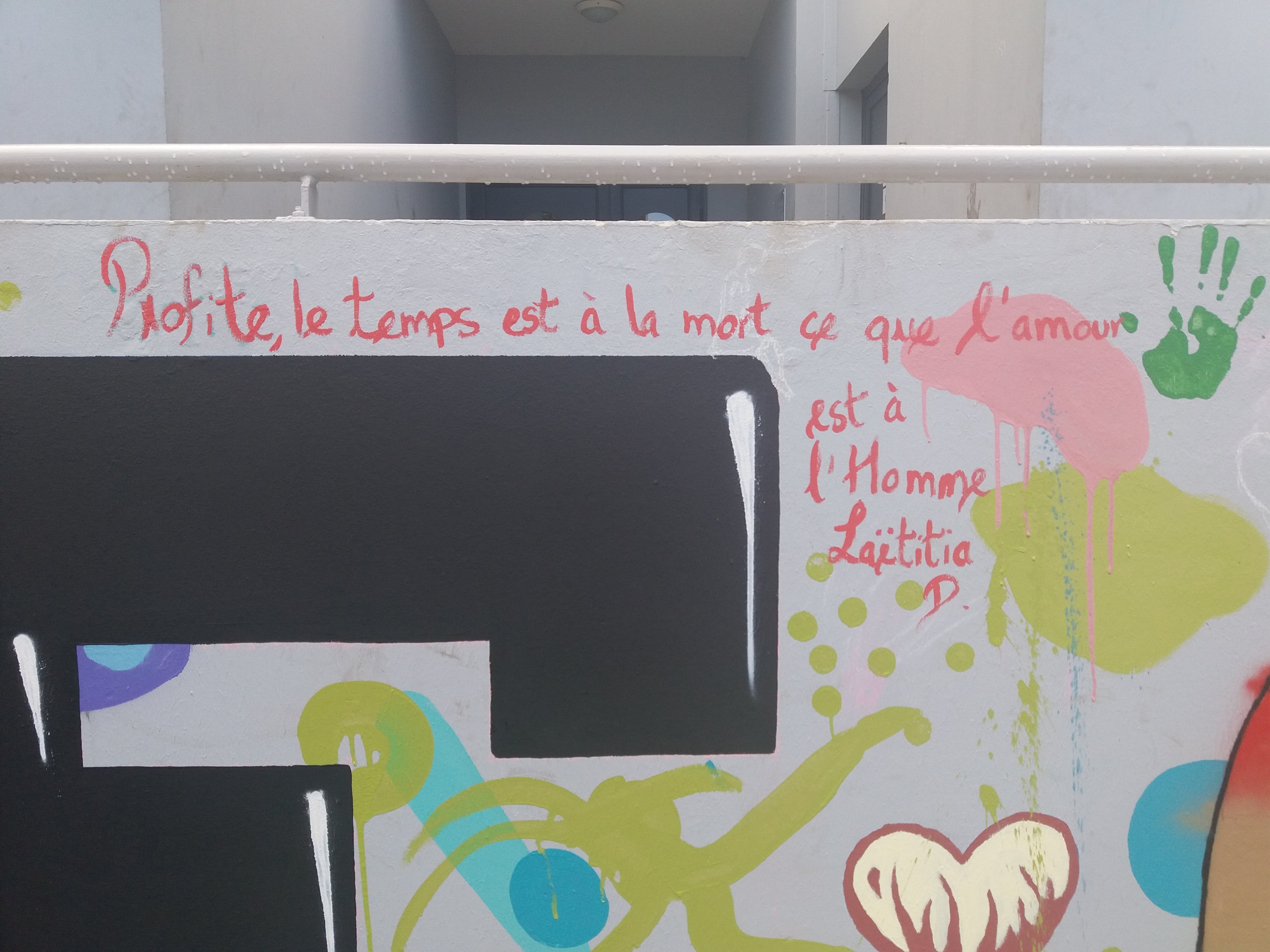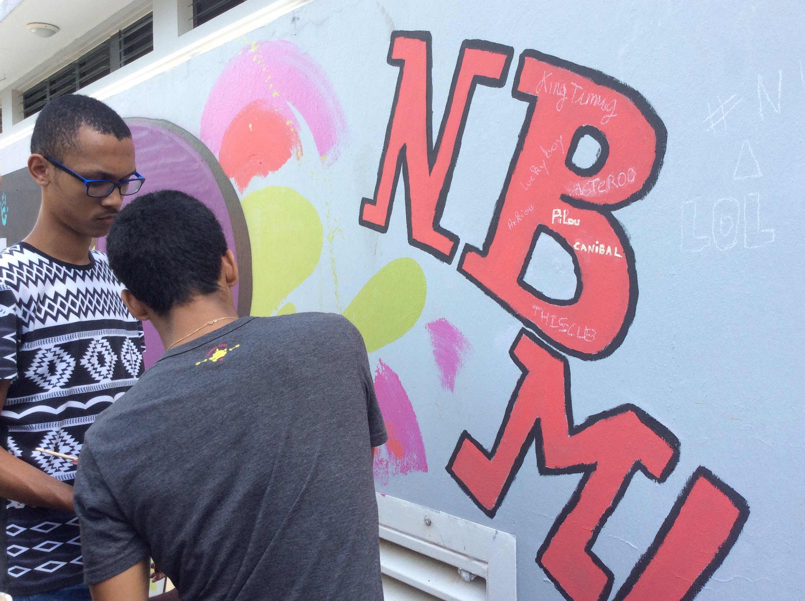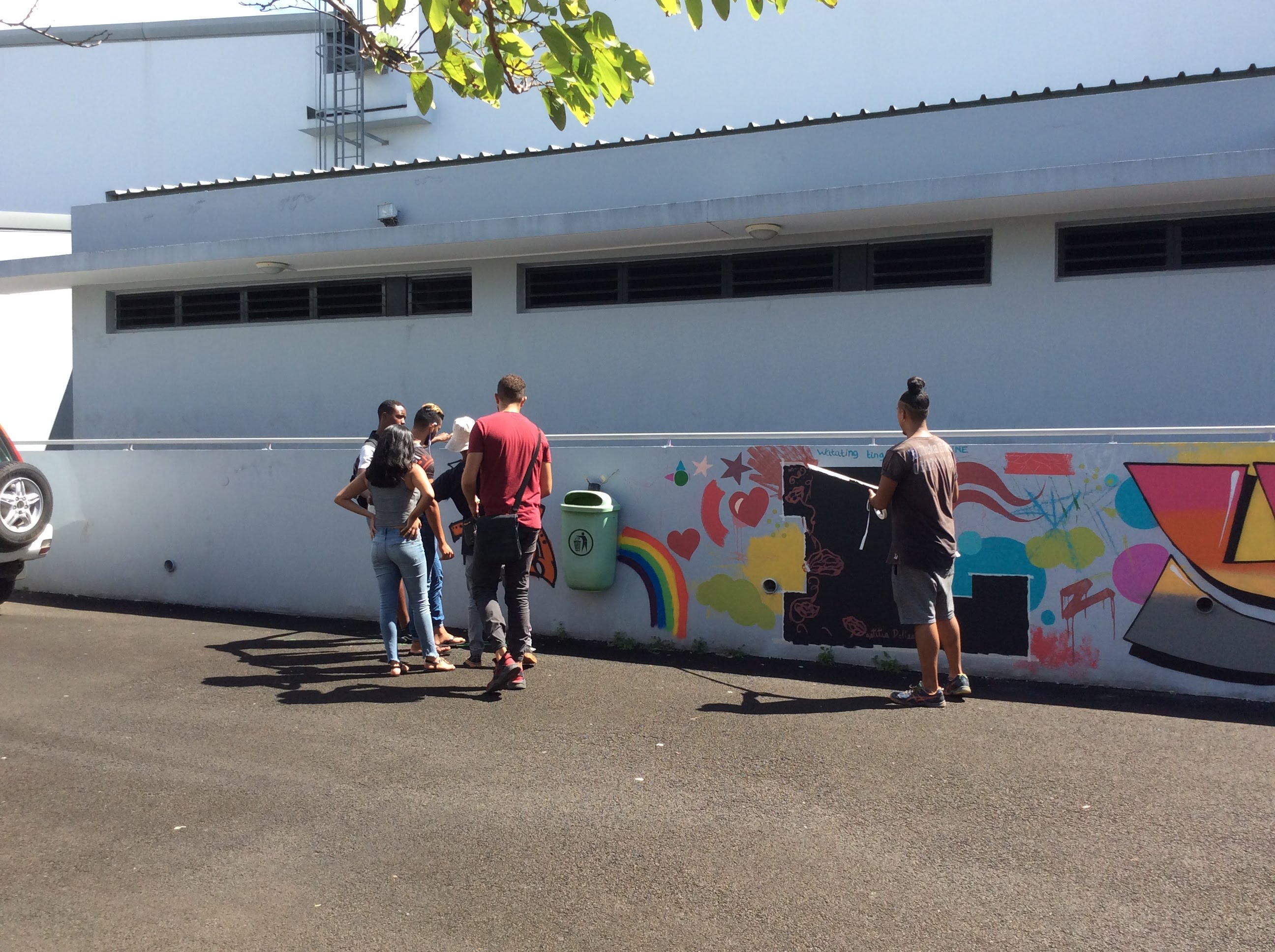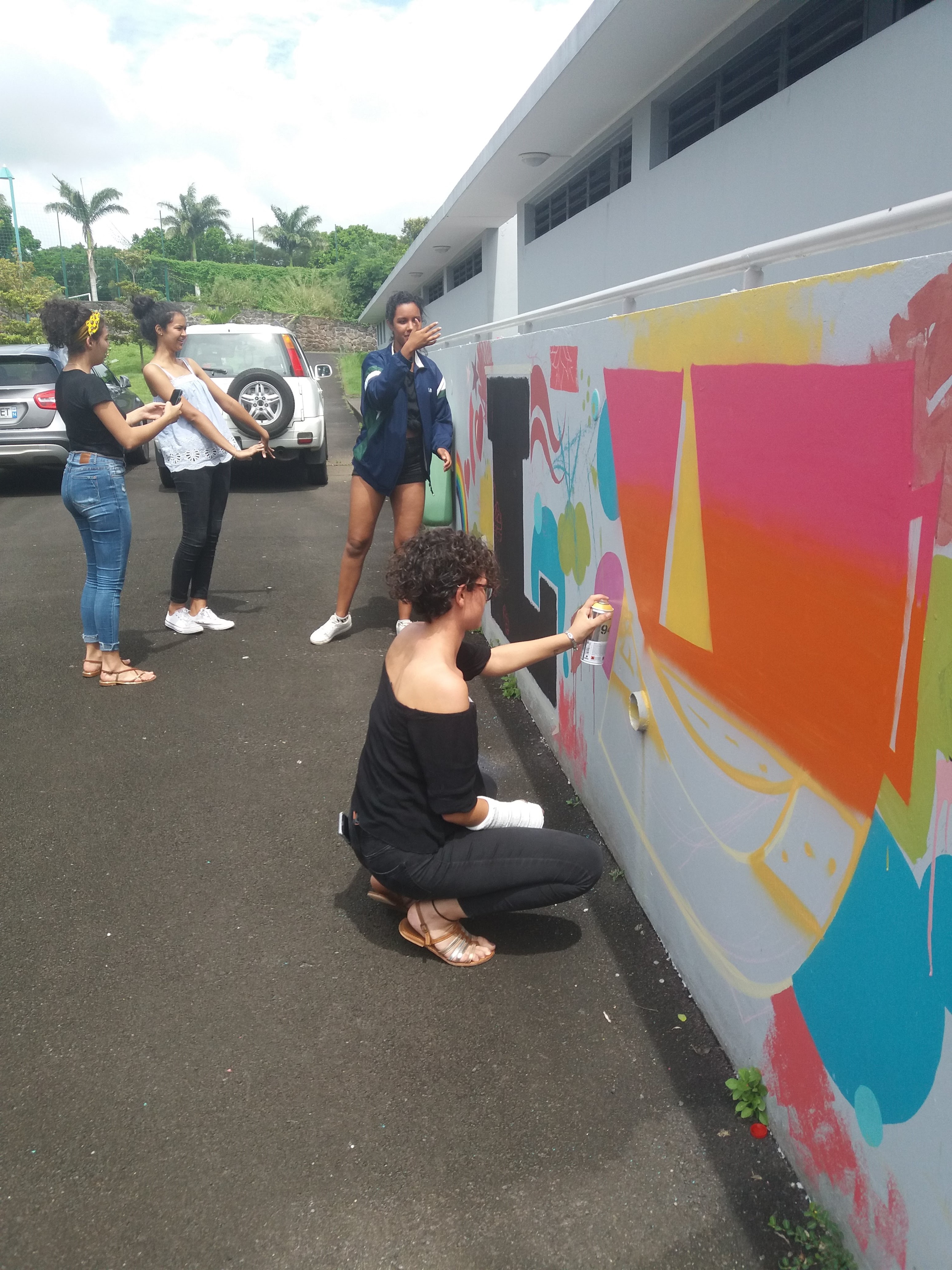 Ø GRAFFEURS: Réalisation d’une fresque murale sur le mur de la cour centrale avec des graffeurs professionnels : MICKA Intervenant Gence Mickael · BONHEUR GRAPHICK Intervenant LAGRAVE Steve · TATA Intervenant Simon Rickmounie