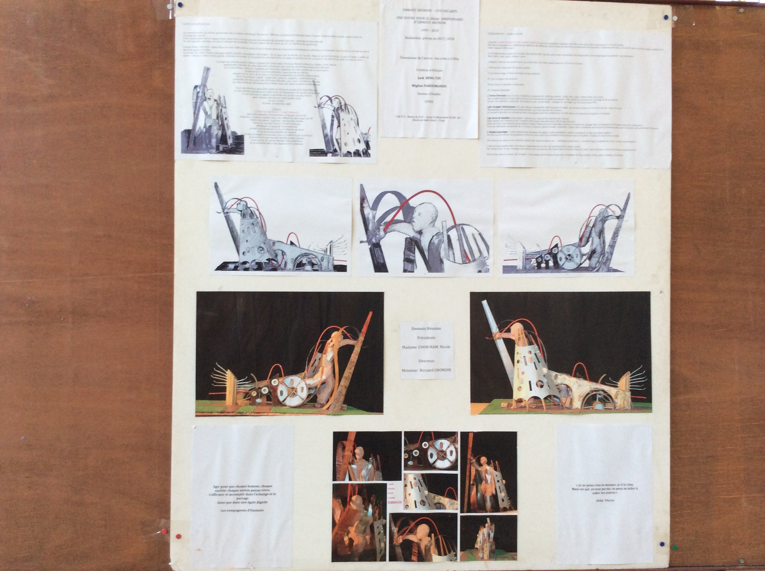 - Artiste plasticien JACK BENG THI qui réalise dans nos ateliers une œuvre monumentale « L’Homme debout» créée dans le cadre du 20 ème anniversaire d’EMMAÜS REUNION en relation avec la cité des arts et le lycée Bel Air.