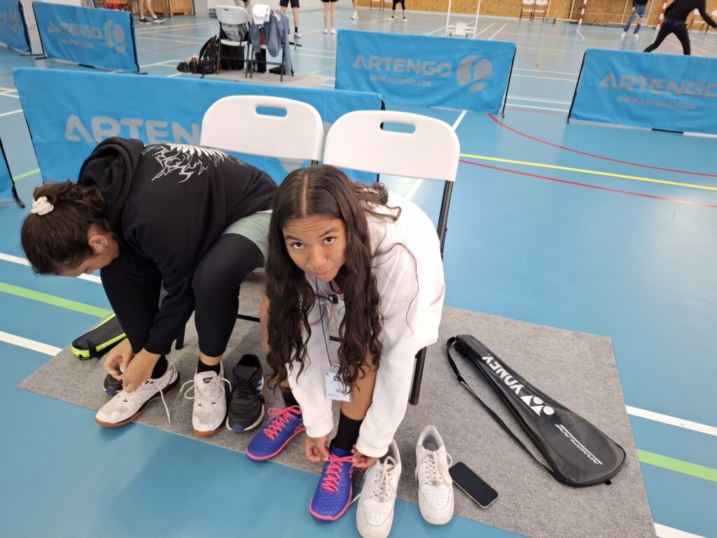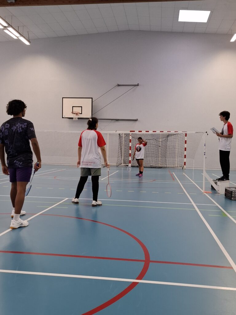 Les jeunes ont maintenant envie de jouer. Pas à des jeux, non. Jouer au badminton : il faut maintenant taper des volants. On a accès au gymnase pour s’échauffer. On entre, Shanee et Arthur sont réquisitionnés pour passer les questionnaires de jeunes coachs et arbitres. J’entend Maurane dire : « J’y crois pas ! On est vraiment aux championnats de France ! »