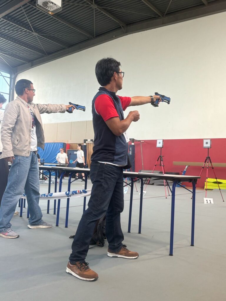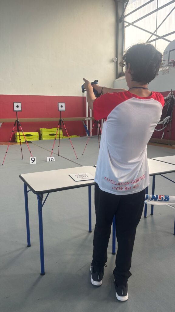 On doit libérer le terrain. C’est dommage, c’est rapide. Mais c’est comme ça. Les jeunes repartent dans le gymnase de la convivialité où il y a tous les jeux. Quand on les y retrouve, un élan de défi au tir s’empare de nous. On découvre enfin le talent secret d’Arthur : le tir au pistolet laser. Le pire, c’est que ce n’est même pas une blague… Il enchaîne les tirs bien plus vite qu’il n’enchaîne les smashs au badminton. En toute décontraction, il humilie même son prof. Il savoure donc le moment avec une fausse modestie…