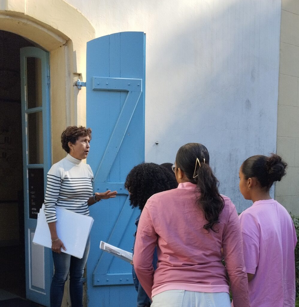 Les élèves ont également visité l’Hôpital des Esclaves, où ont été évoquées les conditions de vie et de travail des esclaves, en lien avec des thèmes tels que le Code Noir, le marronnage et l’abolition de l’esclavage. Cette partie de la visite a été particulièrement marquante, permettant de prendre conscience des injustices et des luttes pour la liberté.