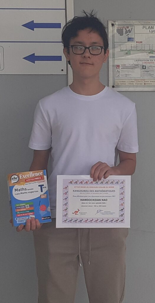 A noter la participation pour la première fois de trois élèves de 1ère STI2D. Deux d’entre eux sont dans les 37% et une est dans les 22% les meilleurs au niveau national parmi les 1ères qui ne font pas la spécialité maths. Il faut dire que cette élève paraissait à l’aise avec le format de l’épreuve quand elle est arrivée le jour J.