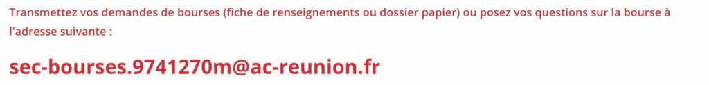 –Transmettez vos demandes de bourses (fiche de renseignements ou dossier papier) ou posez vos questions sur la bourse à l’adresse suivante :