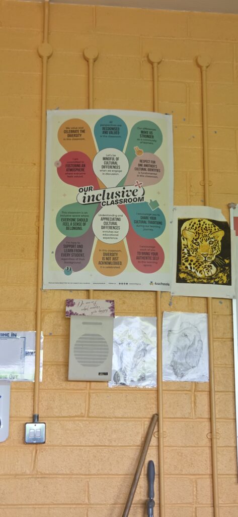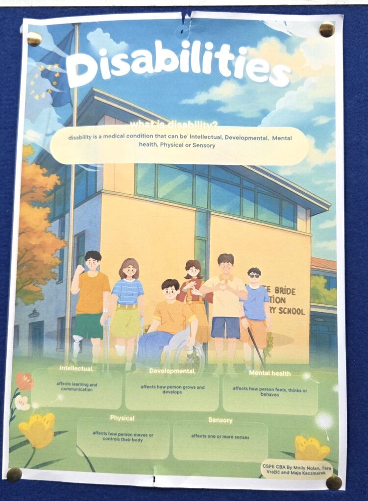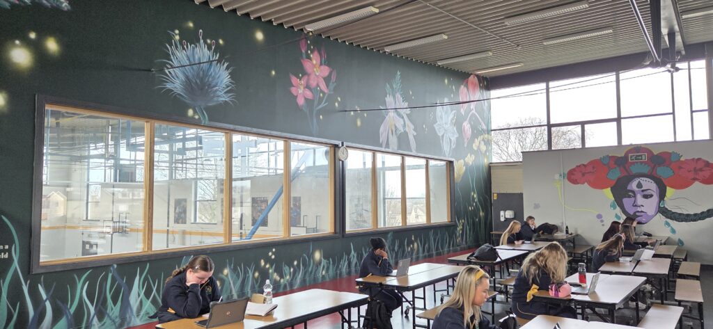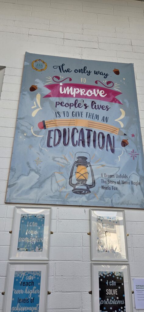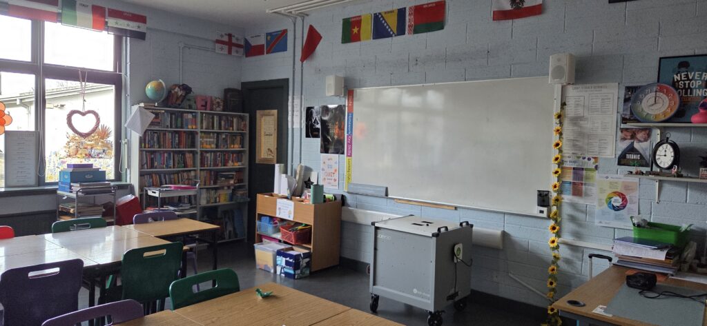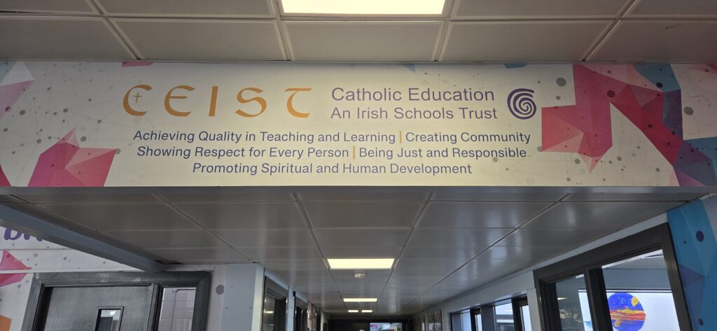Or, dans le cadre d’un Jobshadowing (mobilité Erasmus + en Irlande du 2 au 6 mars 2026), nous étions dans une école catholique secondaire de filles âgées de 12 à 18 ans, le Colaiste Bride School, à Clondalkin, banlieue de Dublin. Comme 88% des écoles irlandaises, Colaiste Bride School est sous tutelle de l’église catholique mais financée par l’Etat (il n’y a en effet que 1% d’écoles privées en Irlande).