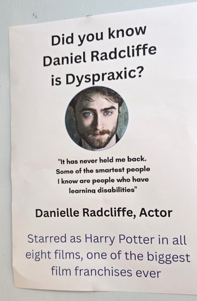 Mais l’école ne se veut pas seulement bienveillante une semaine par an et apporte un certain soutien aux enfants à besoins éducatifs particuliers, en mettant l’accent sur les troubles du langage et des apprentissages : de nombreux panneaux et affiches sont exposés dans tout l’établissement représentant un ensemble de personnalités publiques et des enseignants atteints de troubles DYS, afin que les élèves porteurs de ces handicaps se reconnaissent en eux.