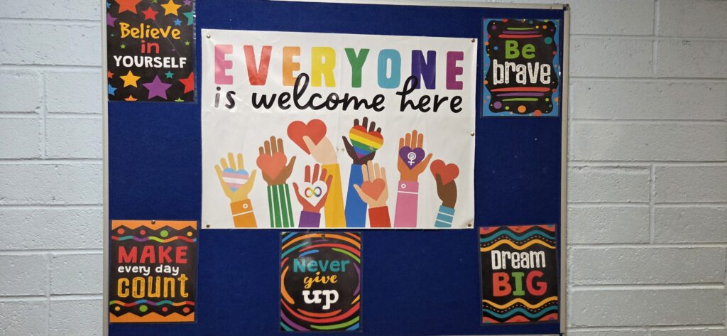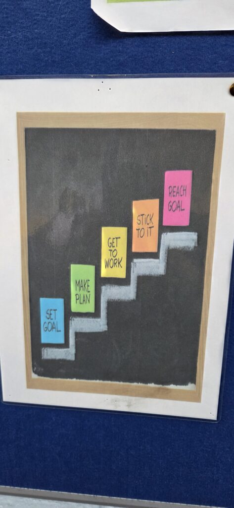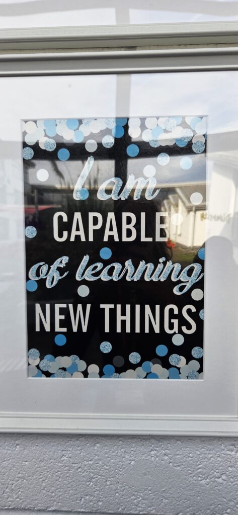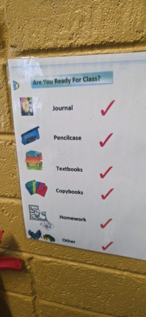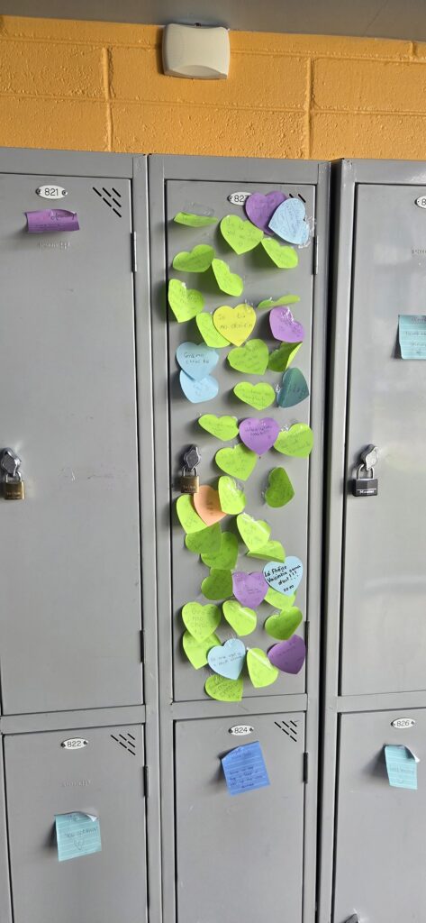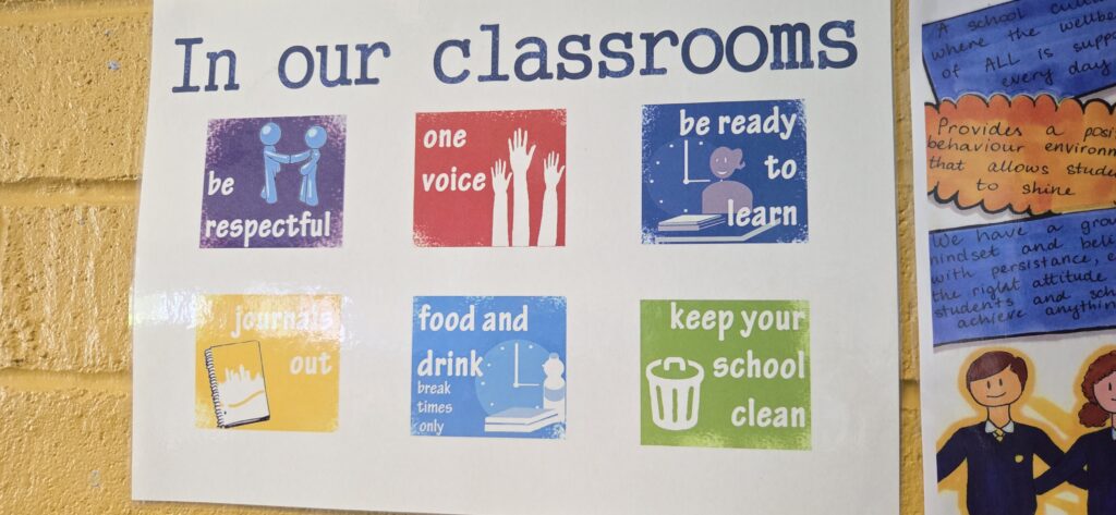 De plus, dans tout l’établissement on trouve des affiches rappelant les objectifs et compétences scolaires attendues. Ces affiches colorées sont dans l’ensemble plutôt incitatives qu’informatives et côtoient un grand nombre de panneaux, affiches, tableaux contenant des messages bienveillants, autour de la valorisation et l’estime de soi.