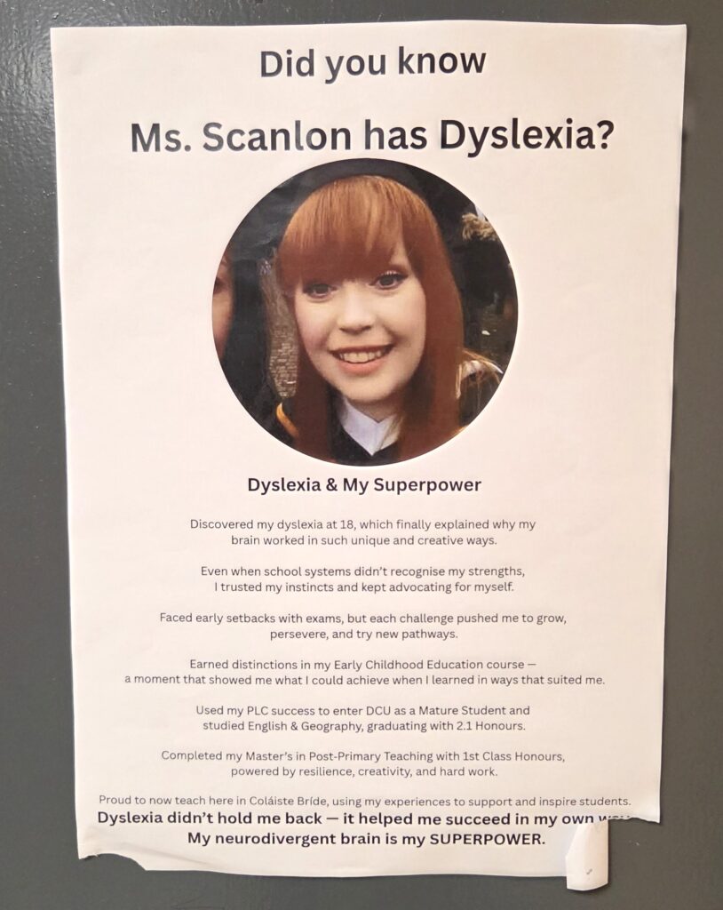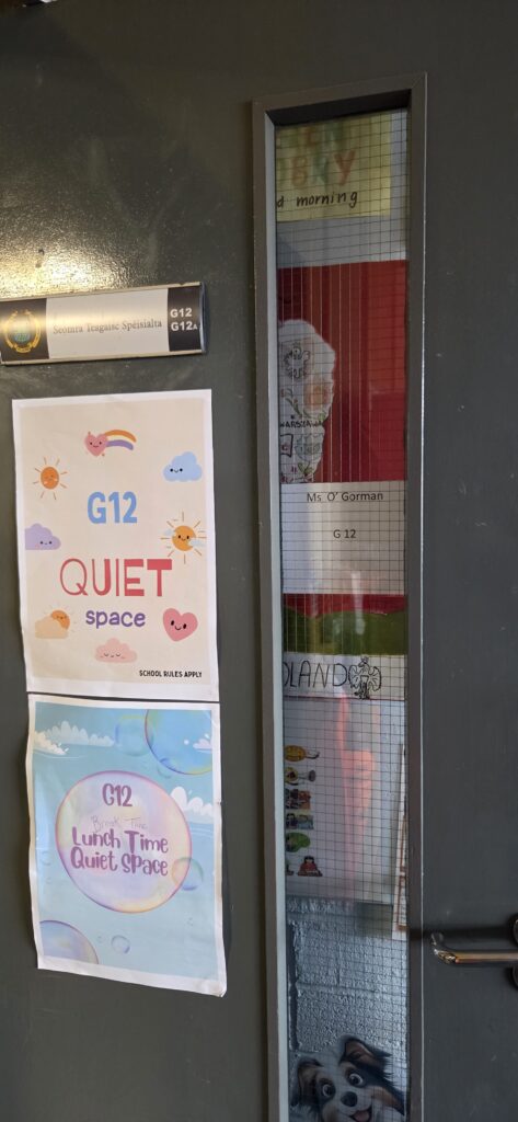Au Colaiste Bride School, pour les élèves porteurs de troubles des apprentissages ou souffrant d’autisme, l’établissement dispose d’une salle spécialisée « quiet space» qui se trouve au milieu des autres salles.