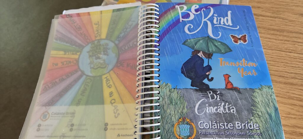 Ce bel outil doit être en possession de l’élève en permanence.  On y trouve, comme dans les carnets de correspondance français le même type d’information (mots d’absence ou de retard que les parents doivent signer, les autorisations de sortie, le Code of Behaviour (règlement intérieur) détaillé, l’emploi du temps, les chartes…), mais aussi des bilans de comportement (points positifs/négatifs ou « merits/demerits »), ou encore des sections « mémo » très complètes : des cartes géographiques, des tableaux de conjugaison (en anglais, irlandais/gaélique, ou langues étrangères), des conseils de bien-être (Wellbeing), un suivi des objectifs personnels de l’élève pour l’année et des méthodes et outils de révision. Au Colaiste Bride School, le School Journal est volumieux et plutôt pratique :