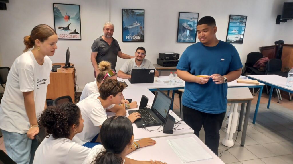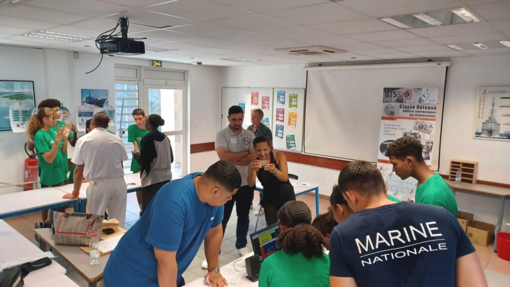 Ci-dessous, des élèves en action sur l’atelier cyber coanimé par des étudiants de BTS SIO Cybersécurité et la Direction interarmées des réseaux d’infrastructure et des systèmes d’information de la défense (DIRISI) de La Réunion.