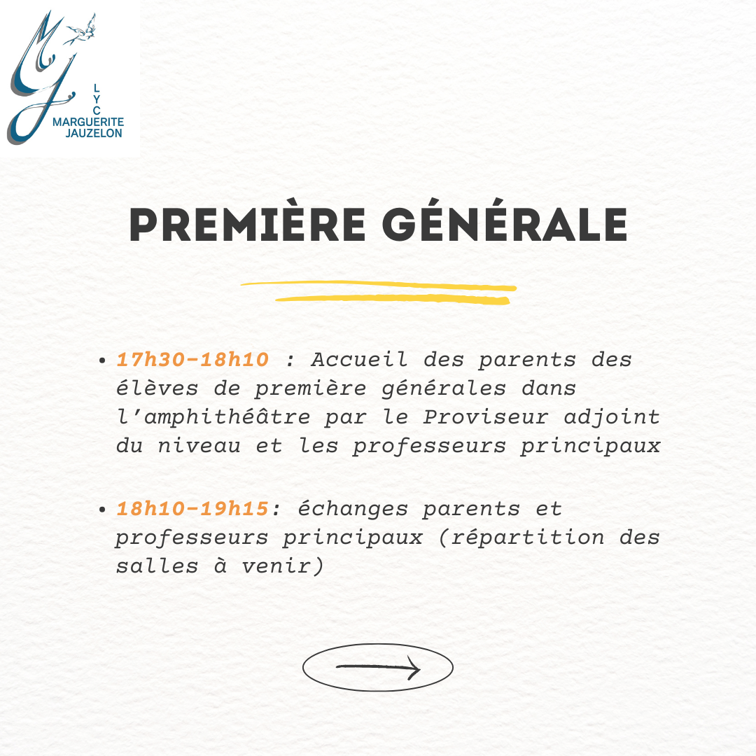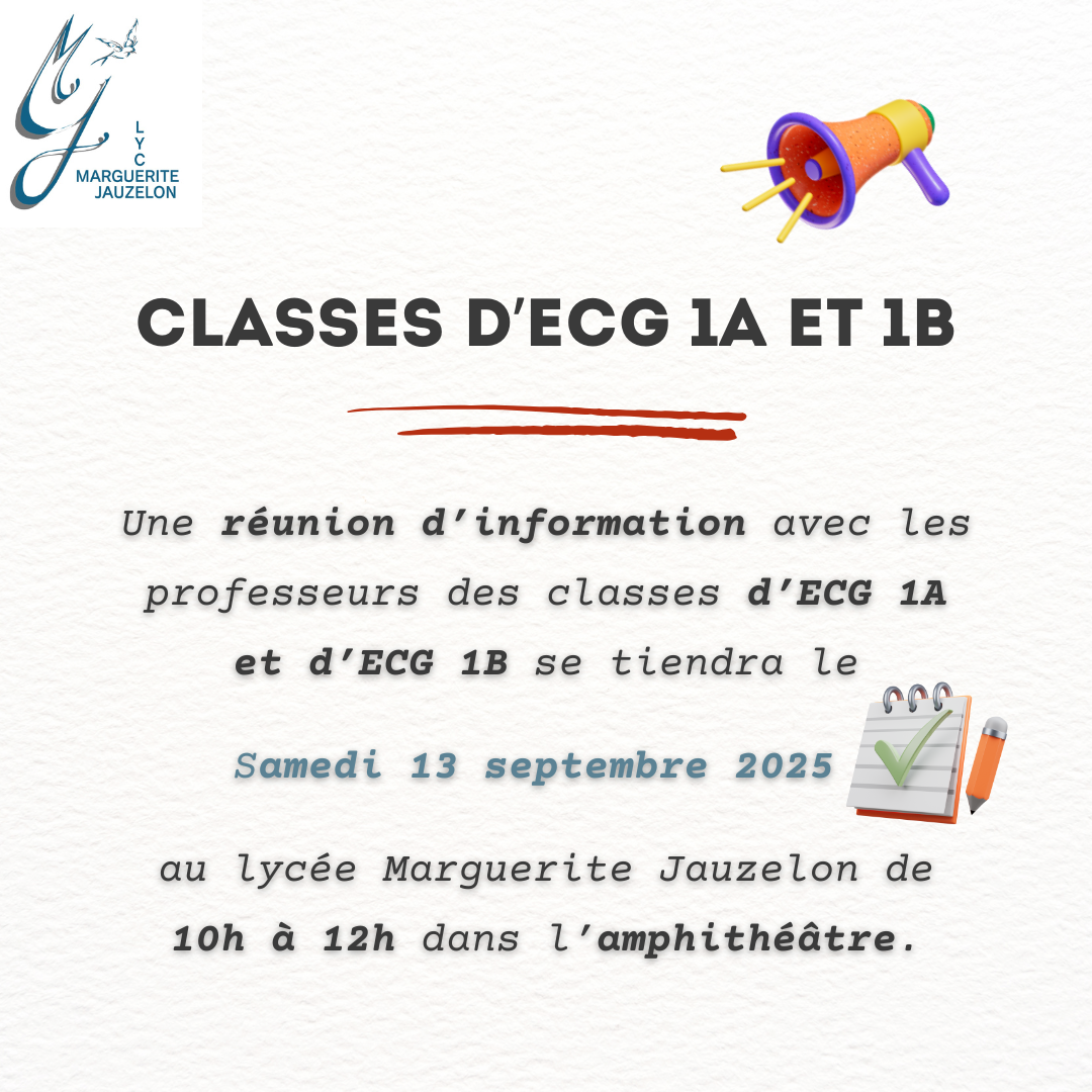 Réunion Parents – Professeurs des Classes d’ECG 1A et ECG 1B