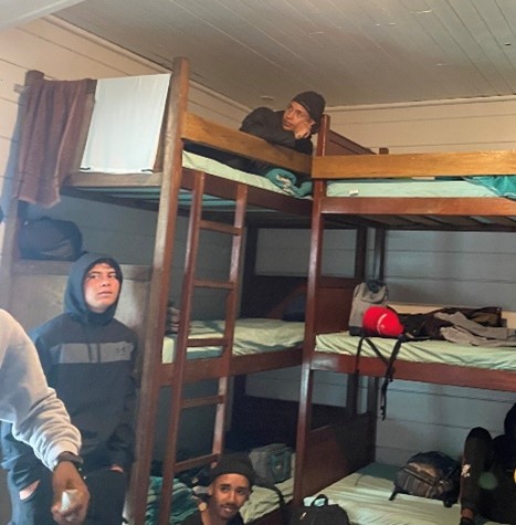 Dans cet hébergement montagnard accueillant, chacun y a trouvé de quoi se détendre et se ressourcer : brin de toilette, partie de cartes, lit en collectif et bon repas chaud fait maison (rougail saucisses et carry poisson). Malgré la fatigue, certains ont tardé à s’endormir, la nuit a été courte, réveil à 3h30 pour l’ascension à la frontale du plus haut sommet de l’île et de l’Océan Indien !
