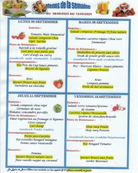 Rien de mieux qu’un menu savoureux et équilibré pour aborder cette nouvelle rentrée. Bon appétit et très belle année scolaire à tous !