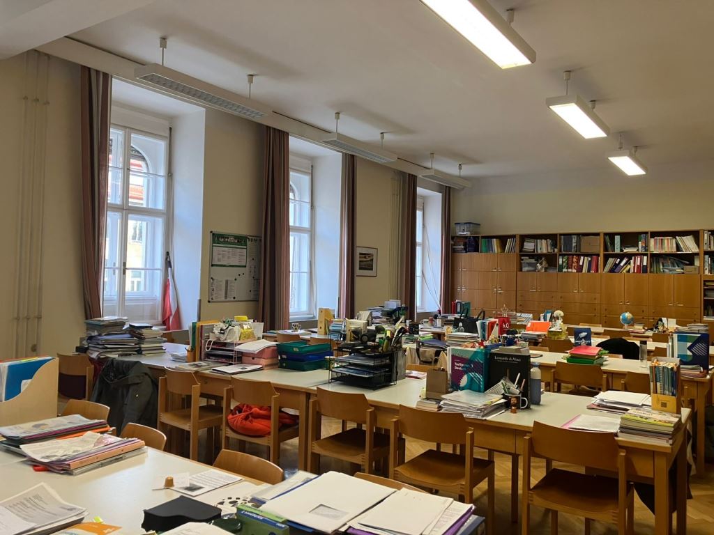 En mars, 10 élèves de Première et Terminale Spécialité AMC et HGGSP se sont envolés pour un échange avec Graz en Autriche. Les élèves ont assisté à des cours, et c’est bien différent de La Réunion ! Les cours durent de 7h30 à 13H30 ou 14H30 quasi sans interruption. En début d’après-midi, tout le monde rentre chez lui : place pour les loisirs, le sport, le travail… Les téléphones sont rangés dans des boîtes à l’entrée de la salle. Chaque classe a sa salle, ce sont les professeurs qui bougent d’une classe à l’autre. Nos jeunes réunionnais ont aussi donné des cours de français et présenté La Réunion dans plusieurs classes : c’est une expérience de devenir professeurs !