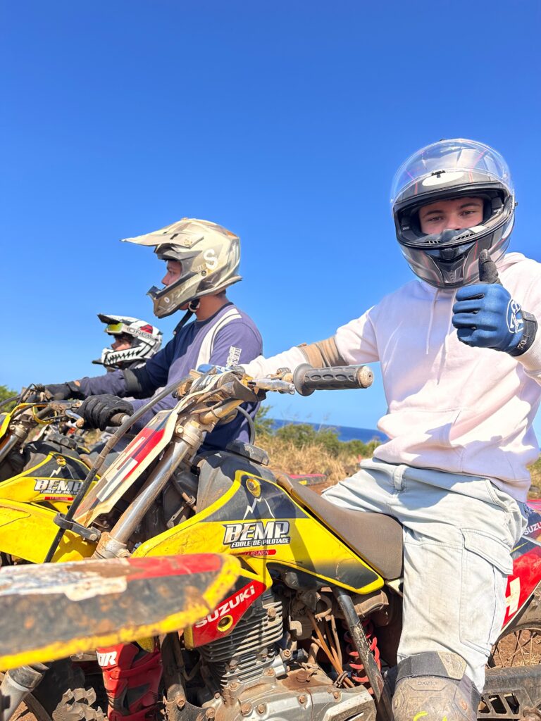 Et quelle conclusion ! Nos jeunes motards en herbe ont enfin pu goûter à ce qu’ils attendaient depuis des mois : le pilotage tout-terrain sur la piste bosselée du team BEMP MX Réunion de Saint Leu. De quoi transformer une simple sortie en un festival de glissades contrôlées, de franchissements héroïques… et de sourires plein les casques.