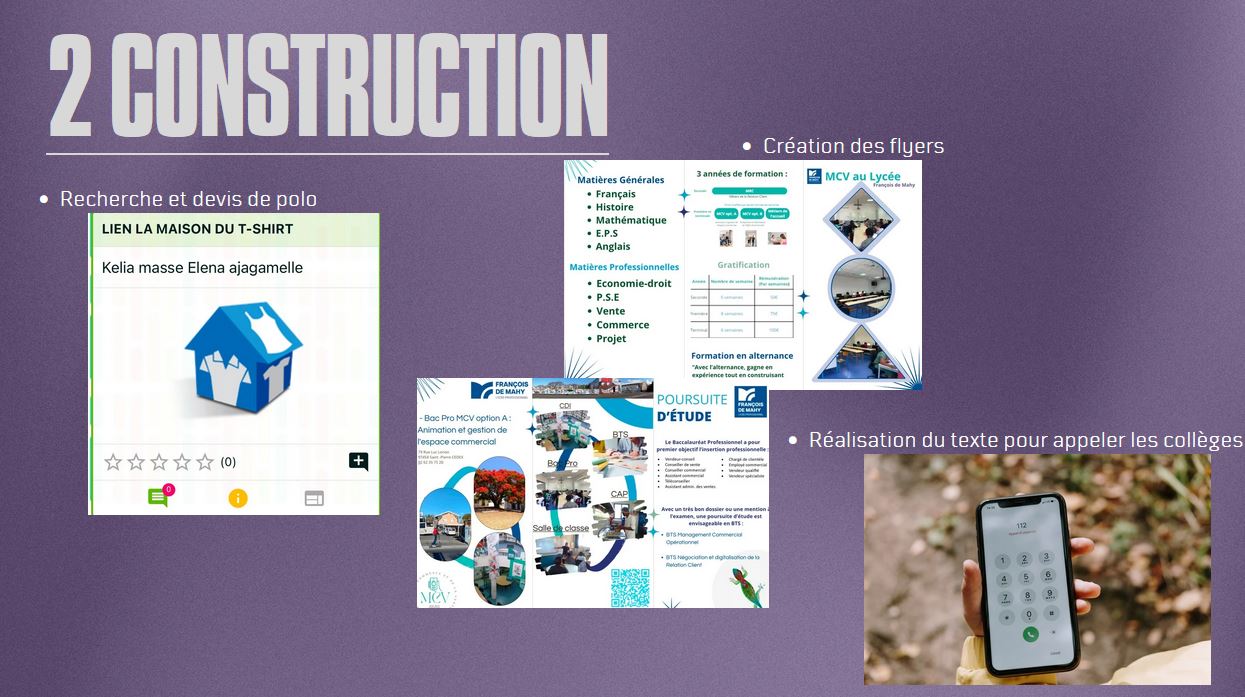 Le projet de la TCO2 était « Valoriser la section Commerce auprès des collèges ». Les élèves ont su s’adapter aux exigences du thème mais aussi à divers impondérables.