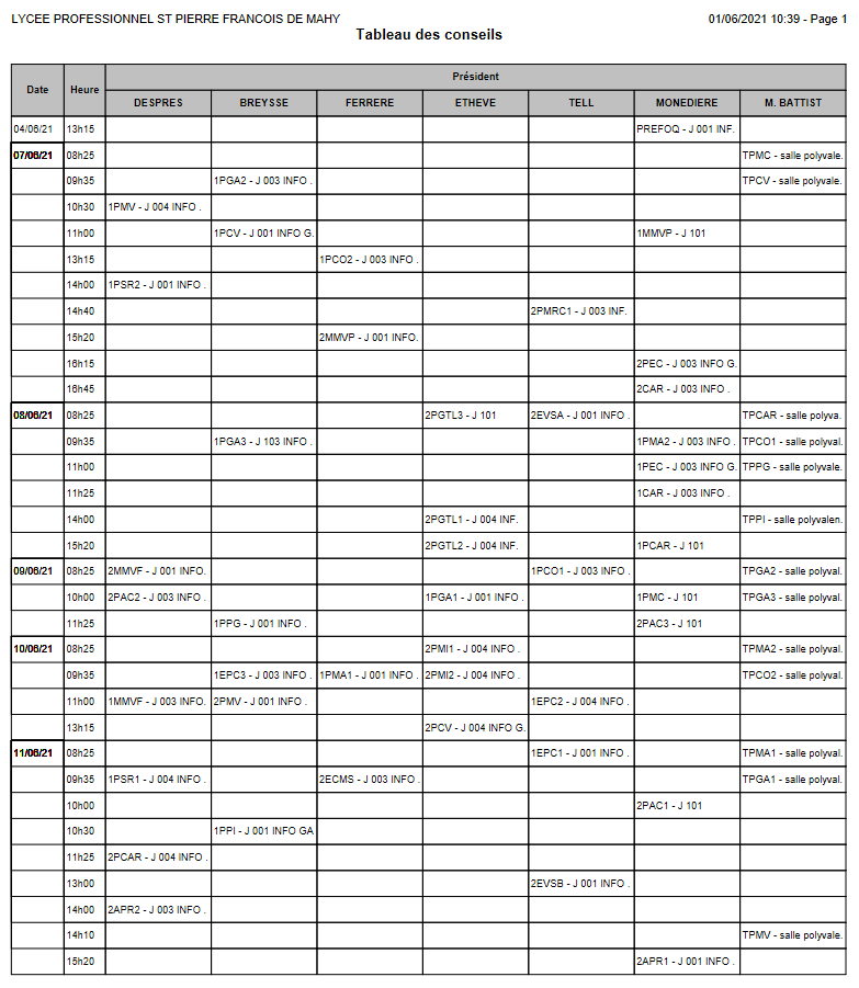 Conseils de classe Terminales Bac pro et BTS :