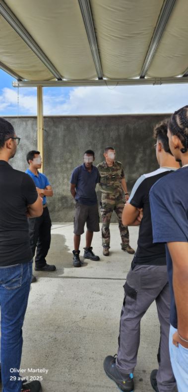 Lors de cette visite, nous avons rencontré trois anciens élèves du lycée François de Mahy, actuellement volontaires au RSMA, qui ont pu échanger entre pairs avec les élèves visiteurs.