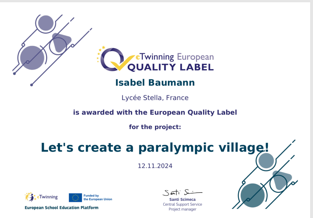 ✨🏆 Nous sommes fières et honorées d’annoncer que notre projet « Let’s create a paralympic village! » a remporté le premier prix au Concours eTwinning France 2024 dans la catégorie Lycée et lycée professionnel !