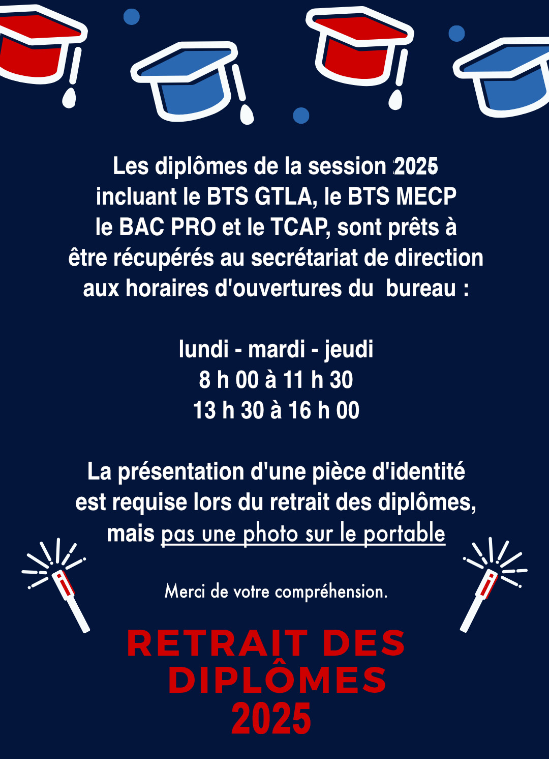 Les diplômes des BTS, BAC PRO et CAP sont disponibles !